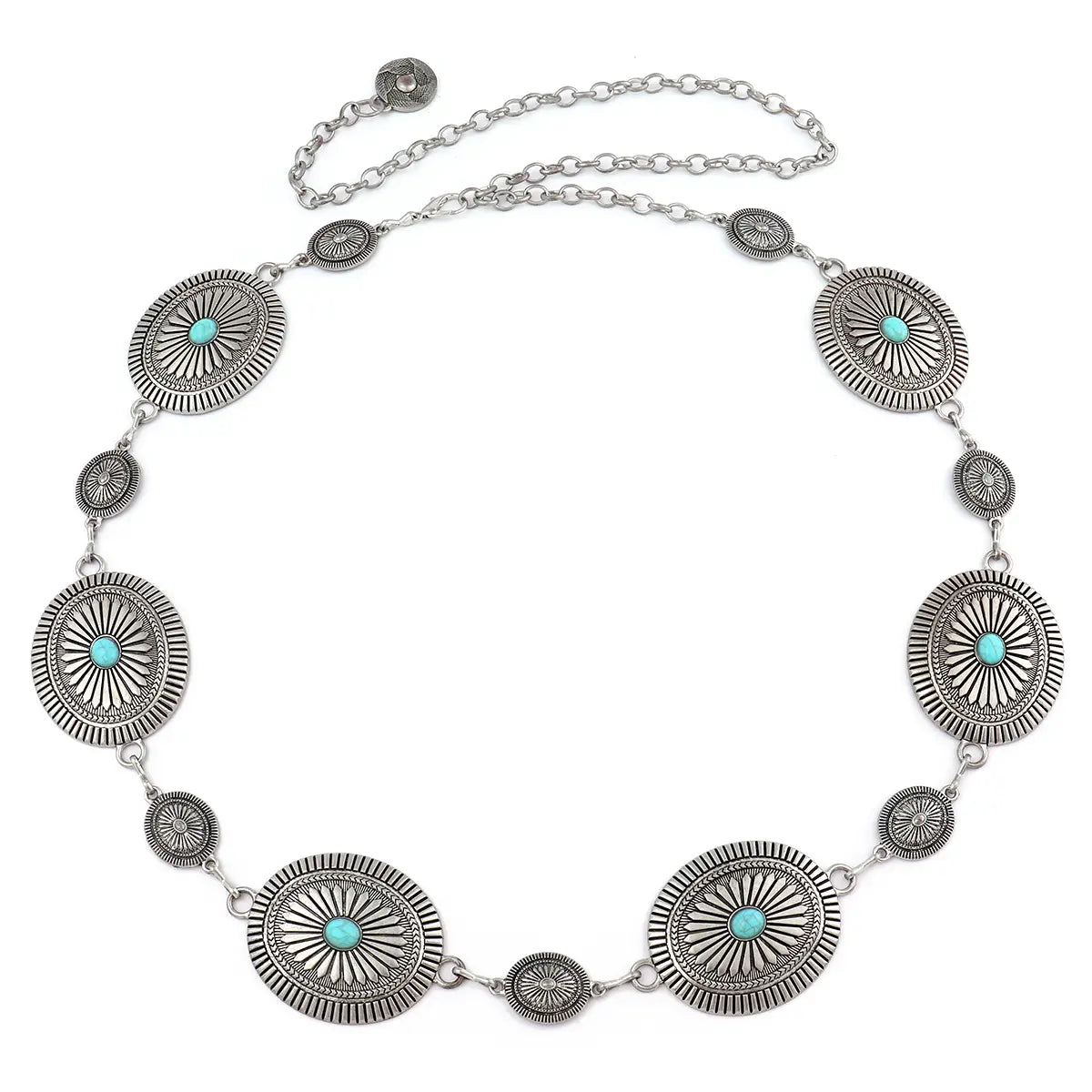 Buffalo Belle - Silver With Turquoise Round Concho Belt OSFM