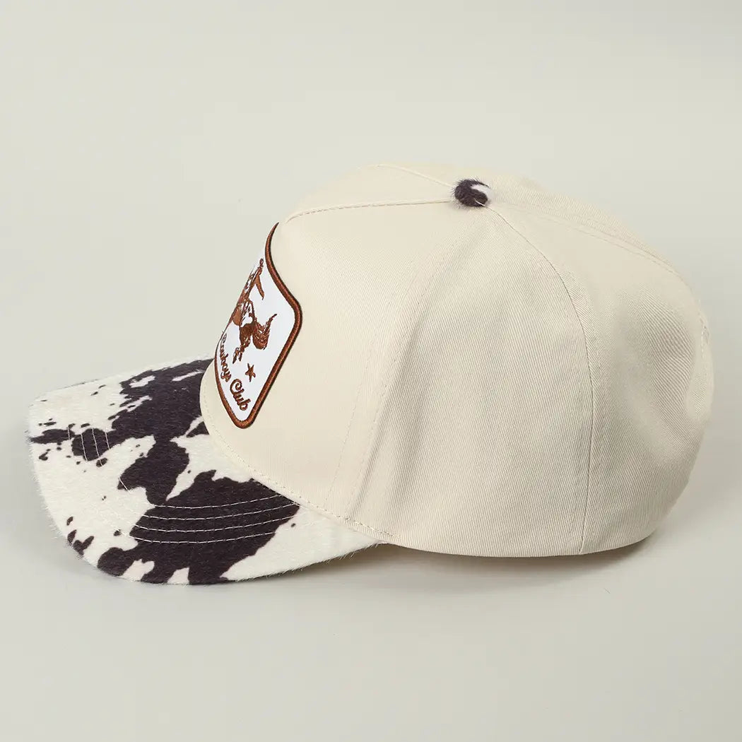 Bring the spirit of the rodeo to your everyday style with this Cowboys Club Rodeo Cap. Featuring a dynamic embroidered patch of a bucking bronco rider, this cap delivers bold Western flair with modern attitude. The standout cow-print brim offers a rugged yet playful touch, while the structured crown ensures a clean and confident fit. Crafted from durable materials and finished with an adjustable snapback closure, it fits most head sizes comfortably. Whether you're a fan of rodeo culture or just want to add standout details to your look, this cap blends classic cowboy energy with trend-forward fashion.