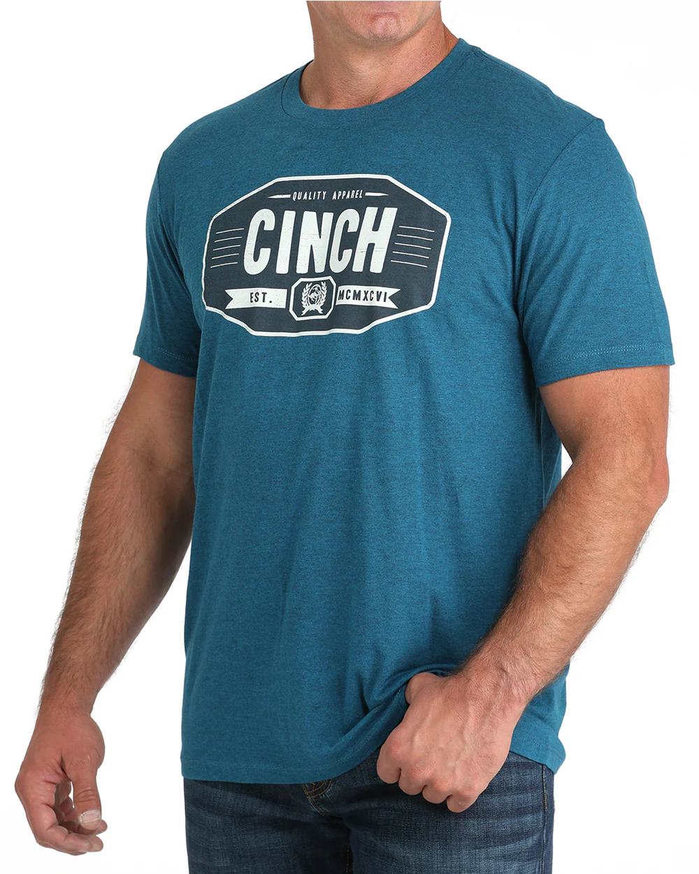 This teal cotton-poly crew neck is the casual, go-to tee you need to pack for every destination. Designed with a CINCH front screen print, our tee makes the perfect match for blue jeans and cowboy boots.