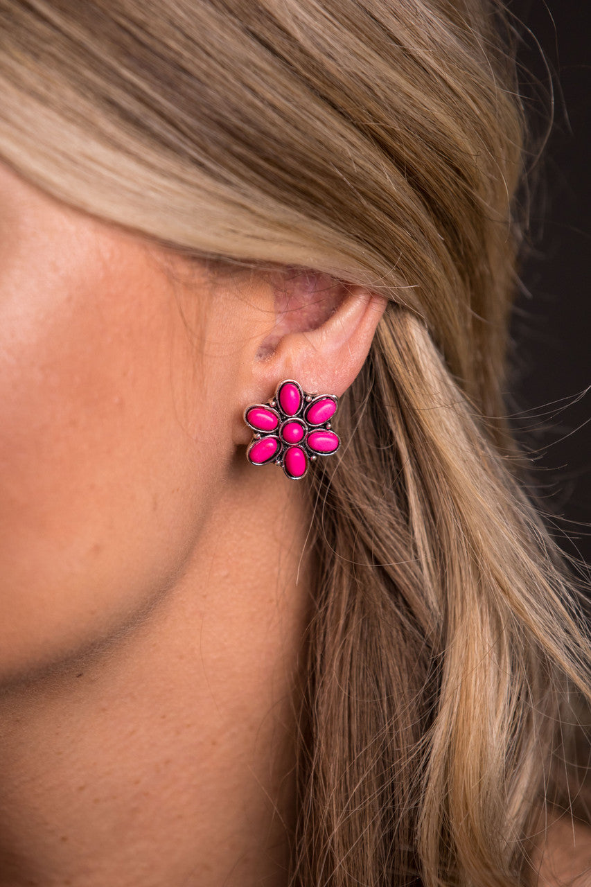 1.25" Burnished Silver Flower Stamped Hoop Earring