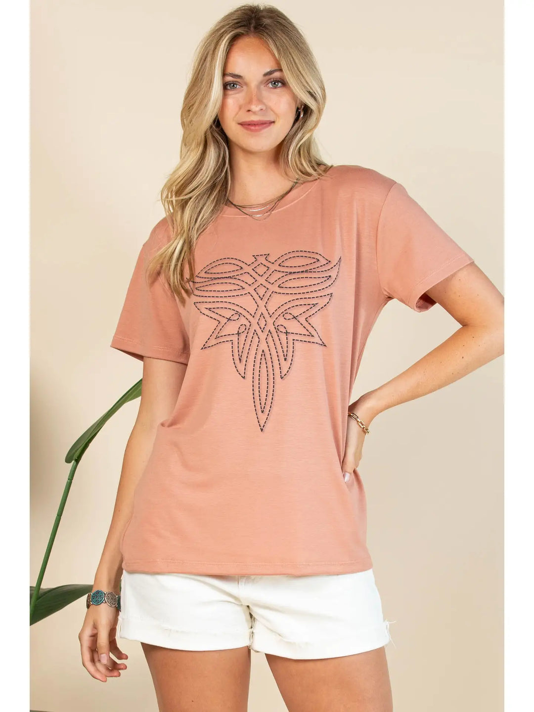 Buffalo Belle - Womens Longhorn Boot Stitch Tee