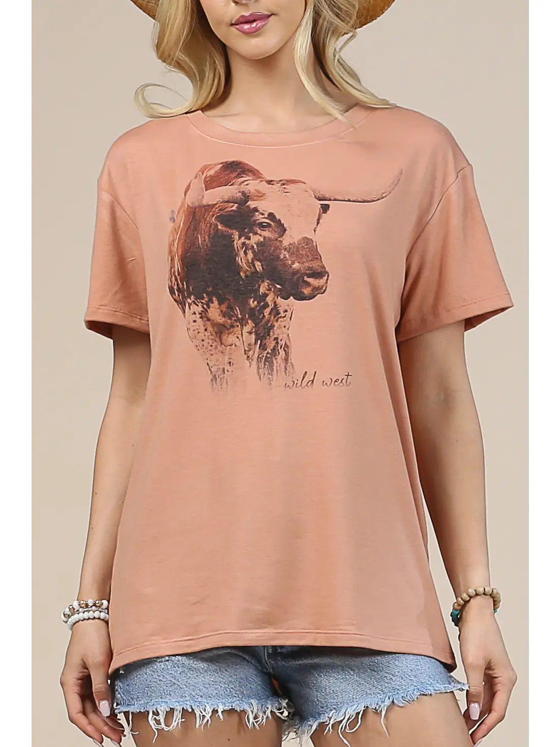 Ride free and easy in this timeless graphic tee. Featuring a longhorn Bull design across the chest, this tee brings a touch of western spirit to your everyday style. The soft cotton blend and classic fit make it perfect for all-day comfort, whether you’re out at the rodeo, kicking back at home, or pairing it with denim shorts for a laid-back look.