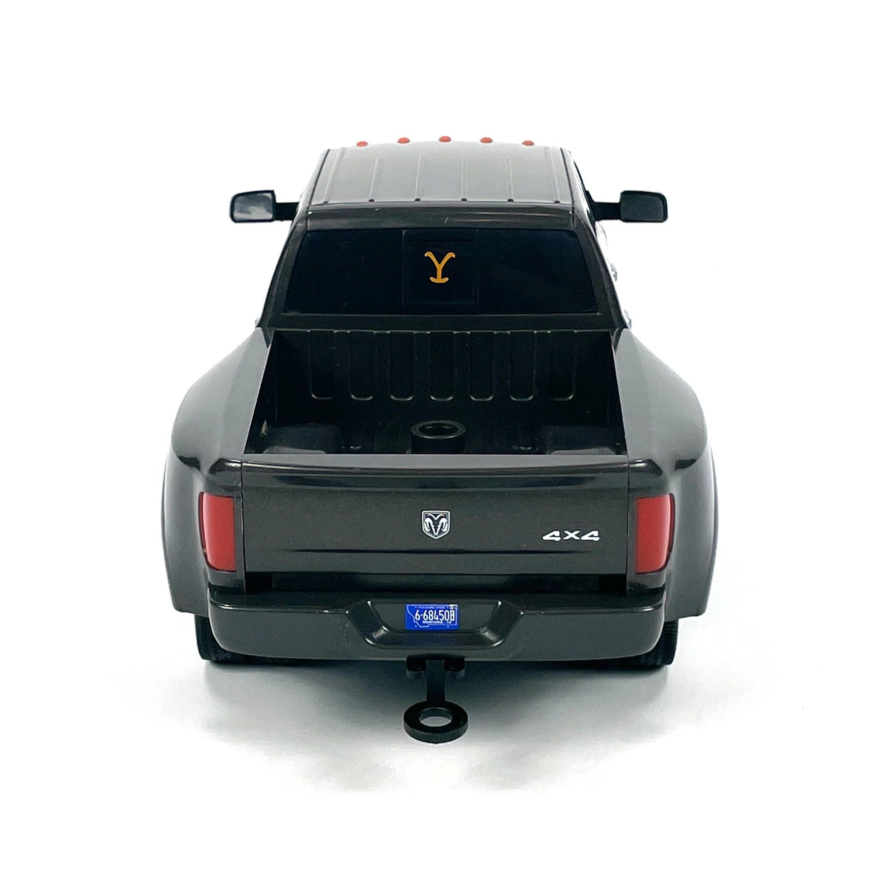 This 1:20 scale replica of John Dutton's Ram(R) 3500 Mega Cab Dually comes complete with a working tailgate and a peg-and-hole hitch that connects with our full line of farm and ranch trailers. Made from our proprietary blend of plastic that creates durable and lifelike toys, and features rubber mirrors to prevent them from breaking.