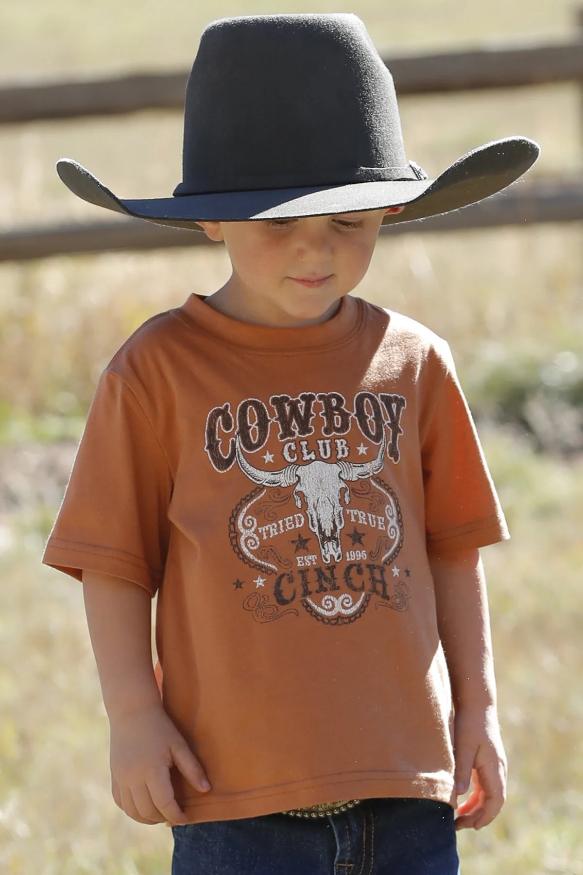 CINCH has all your necessary kid-approved styles, like our fiery red crew neck tee shirt with cowboyin' front screen print. This rugged tee for toddlers and infants is constructed in comfortable cotton-poly material and pairs with his favorite denim for a day at the ranch.