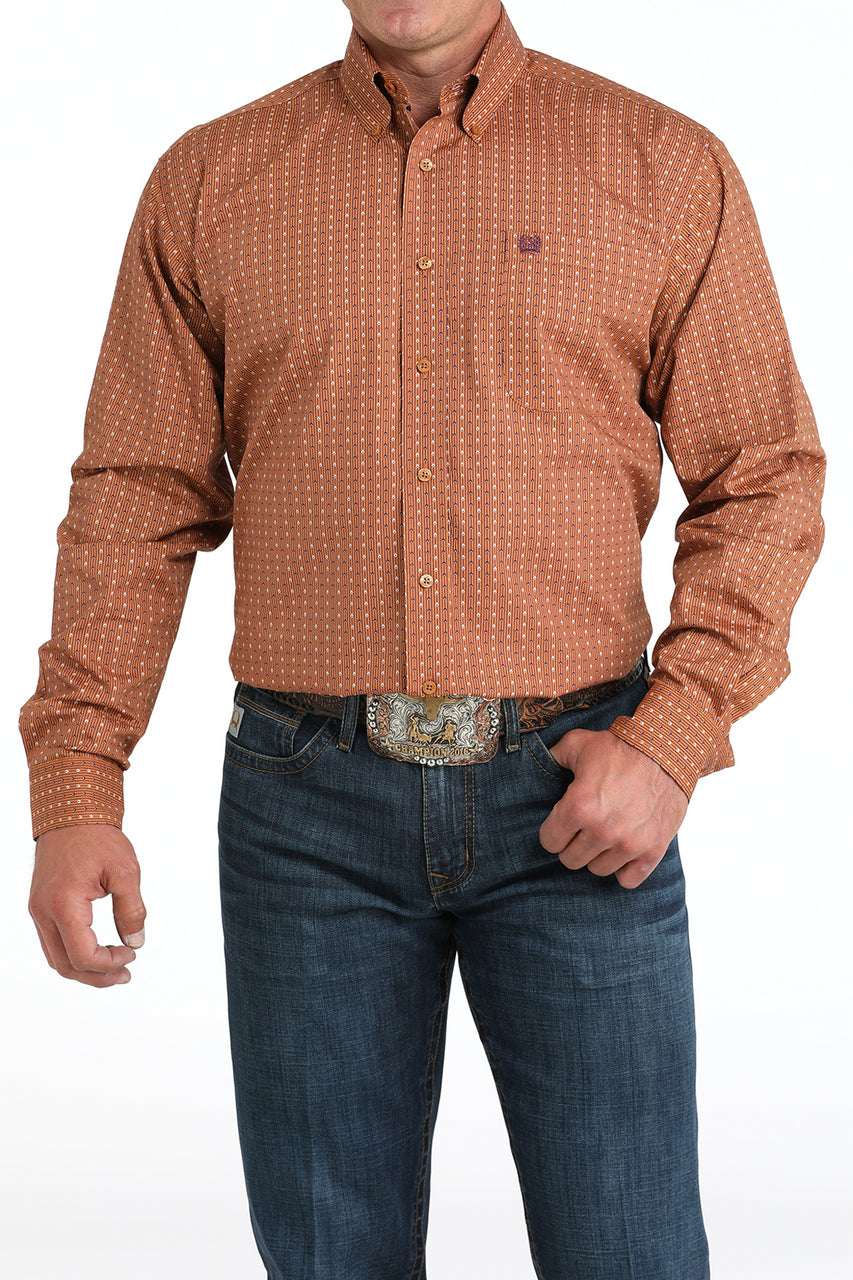 When you’re ready to get to work, so is this brown printed cotton plain weave engineered by CINCH. Our good-looking shirt features an open left front pocket, embroidered logo, and brown buttons.