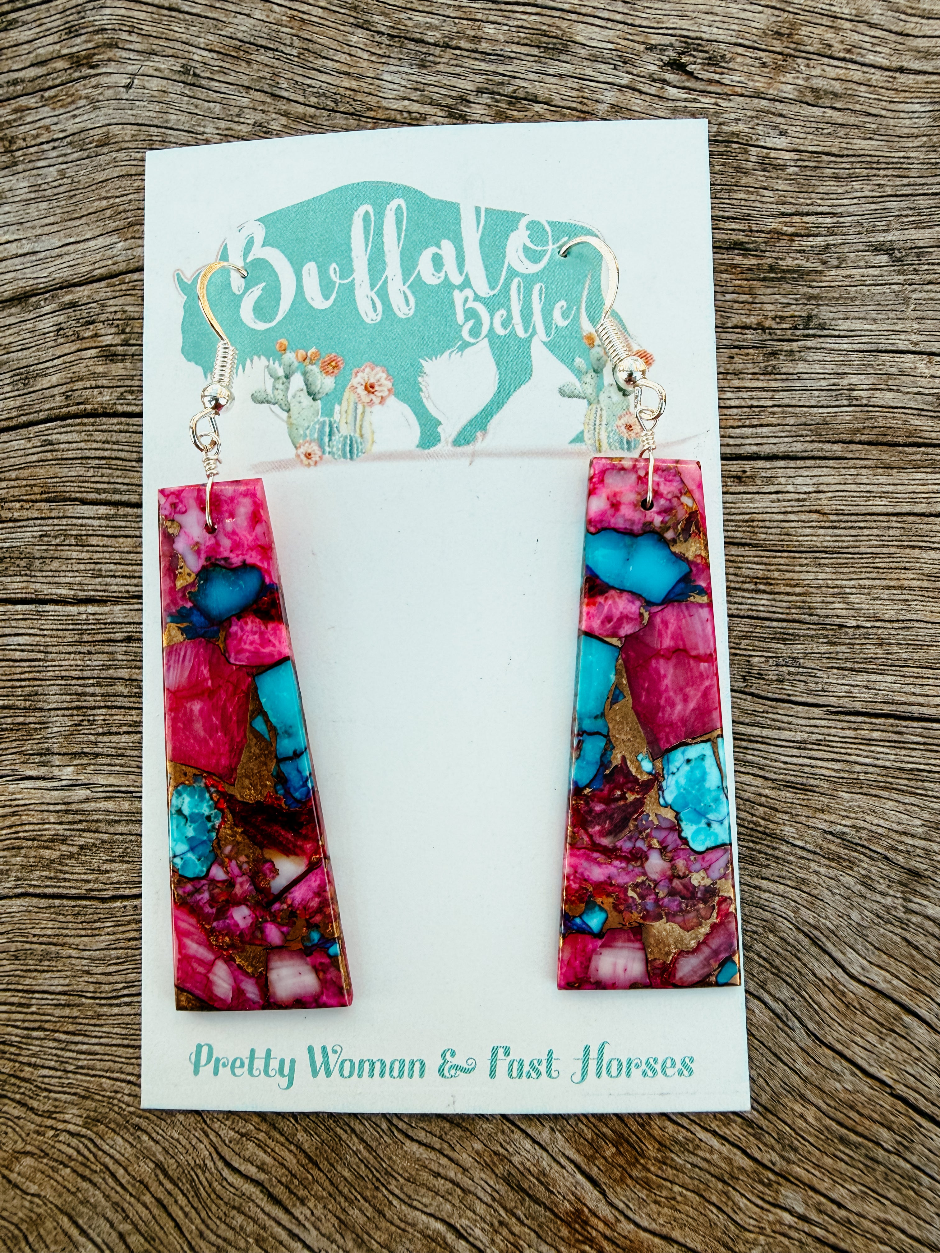 Crafted with authentic Kingman turquoise, these Dangle earrings showcase the natural beauty of one of the most sought-after turquoise stones in the world. Each stone is genuine and unique, with vibrant sky-blue tones and subtle veining that reflect the rugged landscape of Arizona’s historic Kingman Mine.