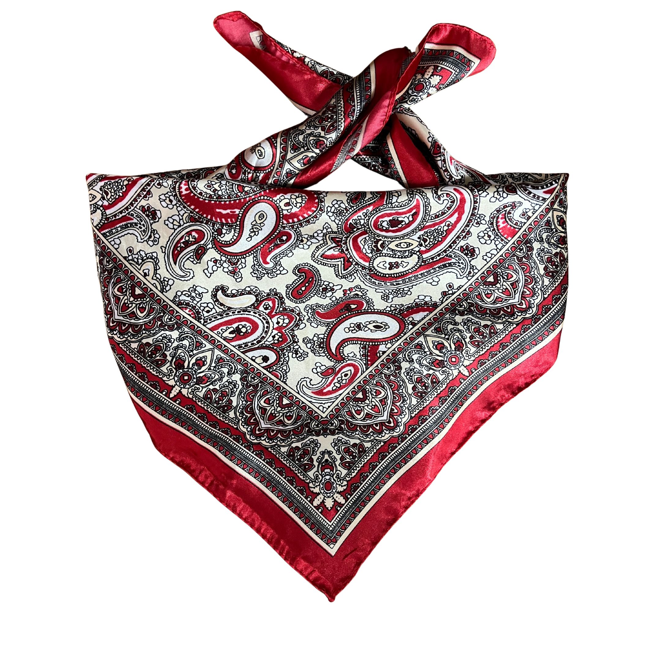 Grey paisley print silky satin neckerchief. Size - Length: 56cm Width: 56cm