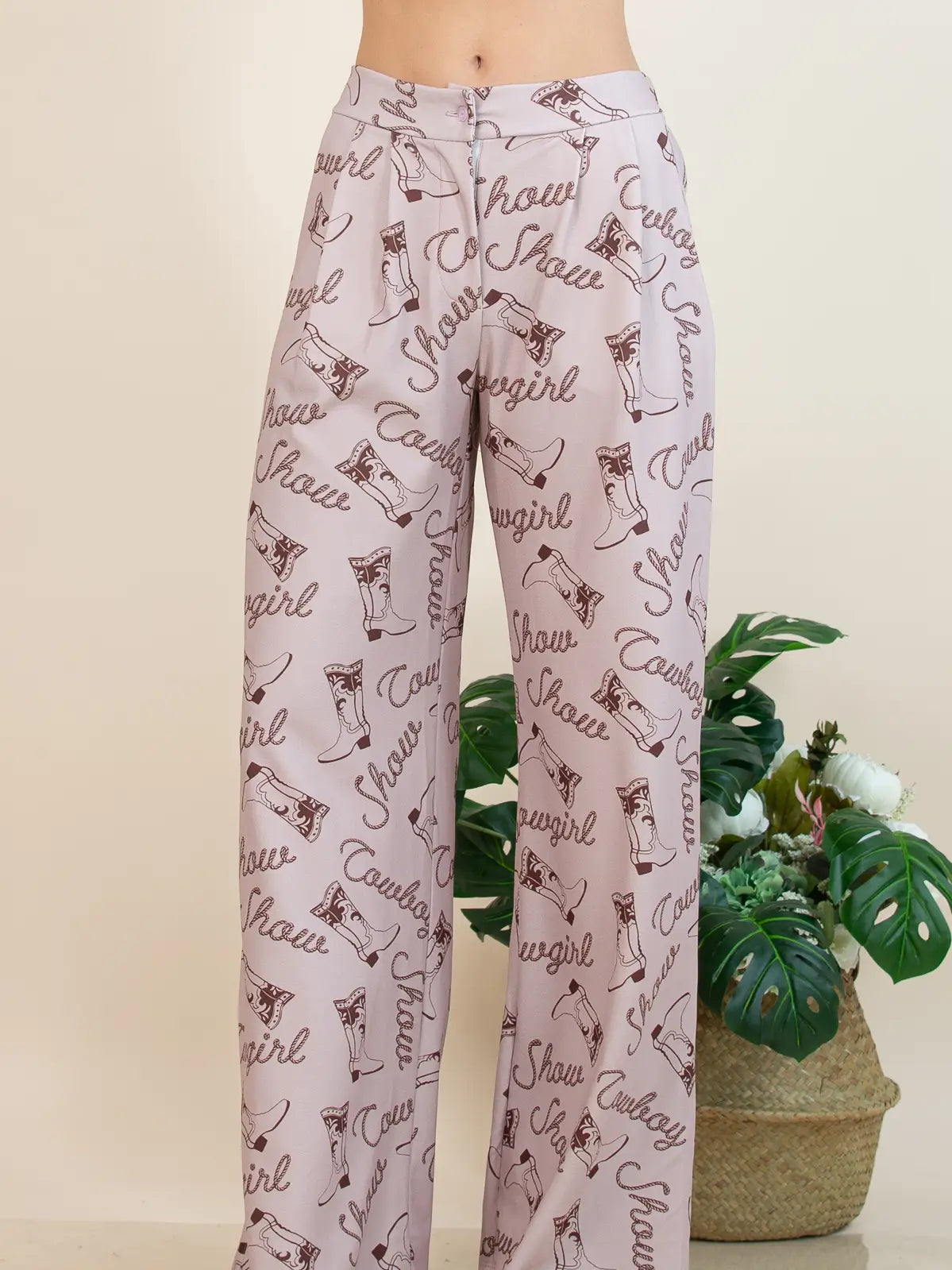 -Stretch Western Farm Print -Front Button, Zipper -Back Elastic Bend -Office Pants, Occasion Pants -Wide Leg Pants - Waist: S 26- 36" Inseam: 31"
