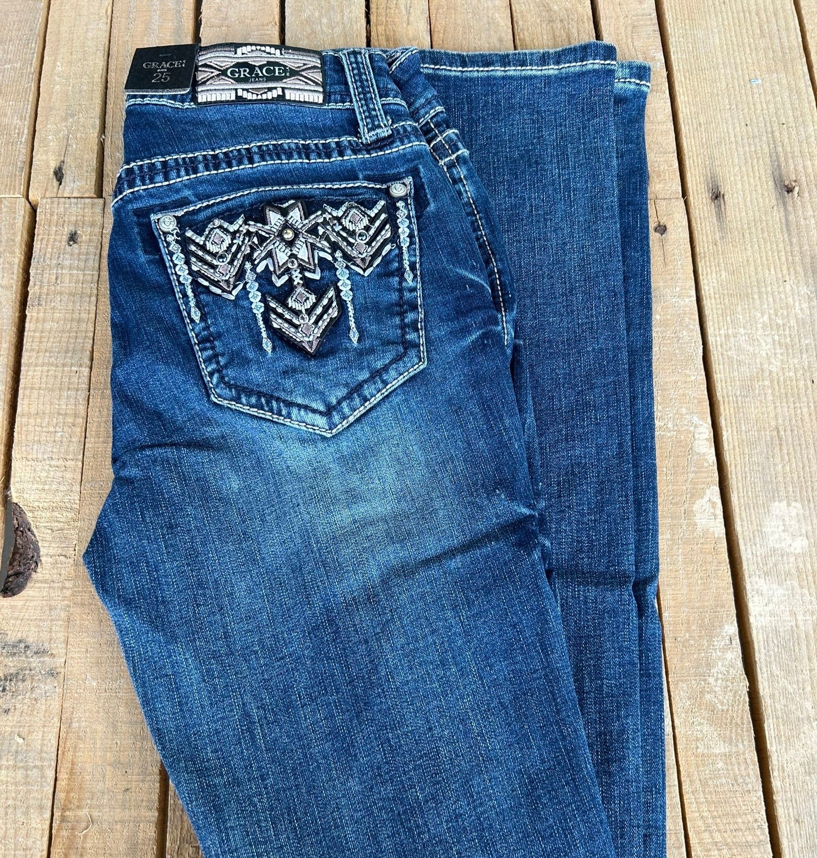 34" leg - boot cut, stretch for comfort and movement, high rise, logo shank button, metal rivets, woven logo label on back yoke,contrast all over topstitch